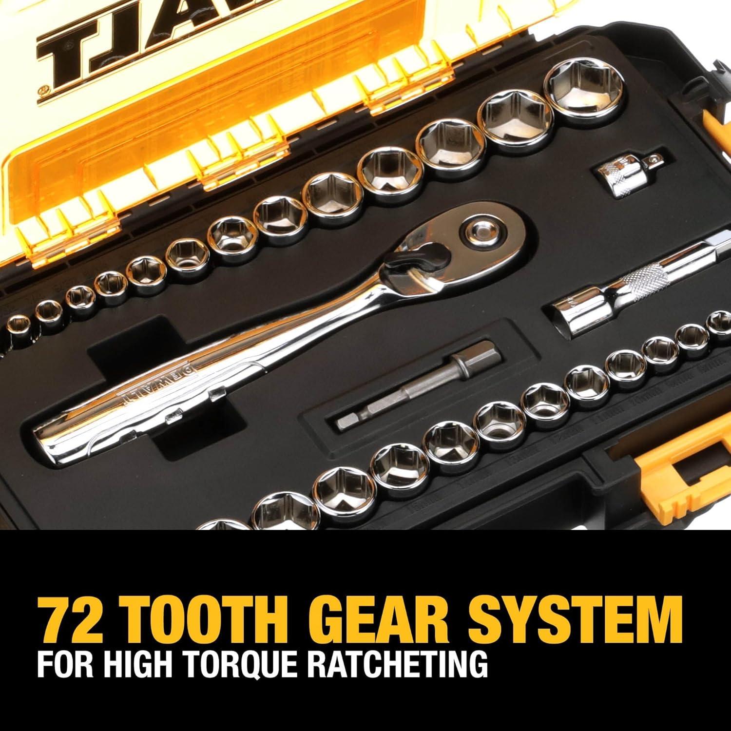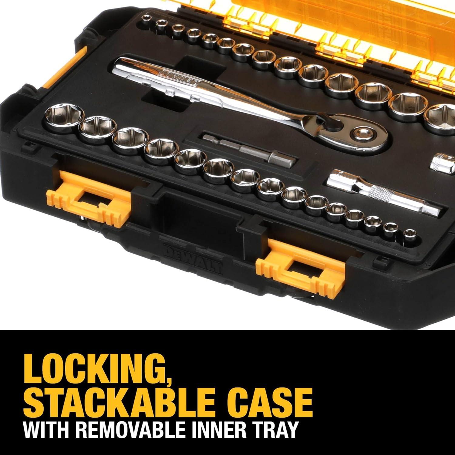 DEWALT Socket Set, 1/4-Inch & 3/8-Inch Drive, SAE/Metric, 34-Piece (DWMT73804)