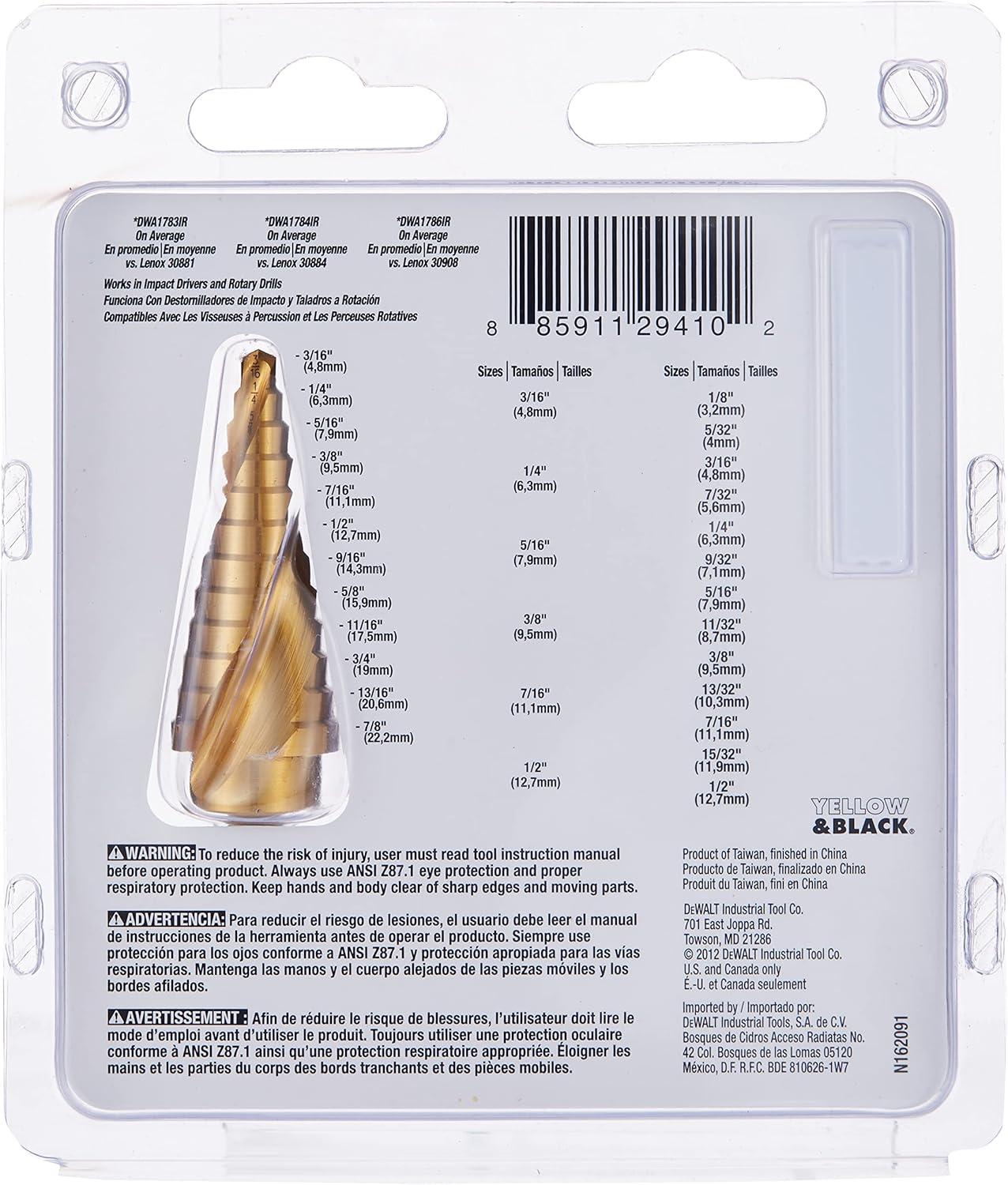 DEWALT Step Drill Bit Set:3 Piece, Titanium Nitride Coated, 31 Hole Sizes, 1/8 in to 7/8 in, 1/4 in Shank Hex Size (DWA1790IR)