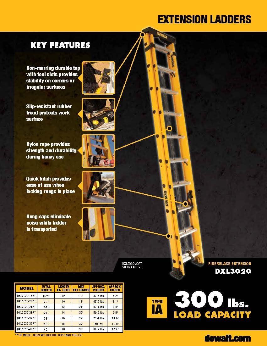 DeWalt Type IA 300lb Rated FG Extension w/ProTop 20′ DXL3020-20PT