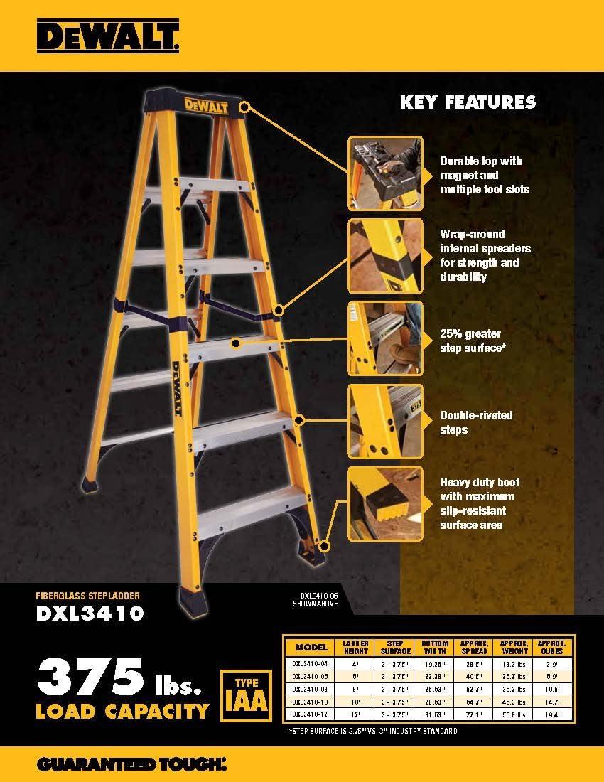 DeWalt Type IAA 375lb Rated FG Stepladder 4' DXL3410-04