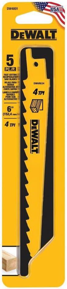 DW4804 6 TPI Taper Back Bi-Metal Reciprocating Saw Blade, 12″(6 inch)